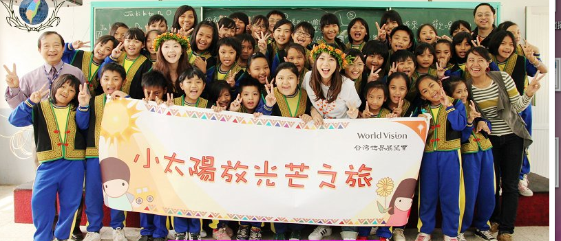 (和小朋友大合照:最左邊是校長,最右邊是吳老師,戴花圈的是小孟和我)
