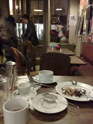 在貼著張曼玉海報的咖啡店聊天